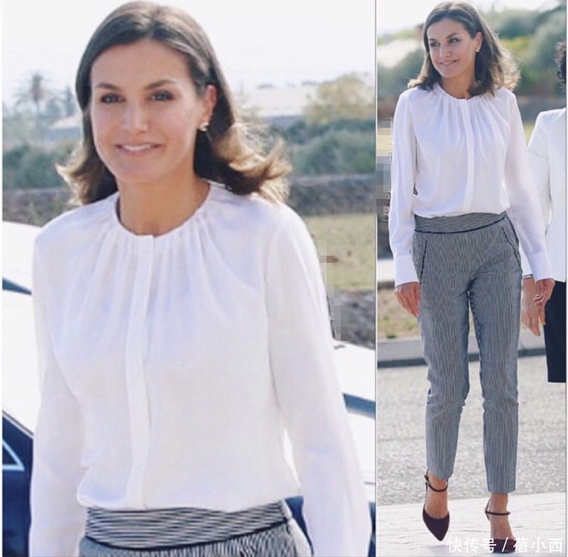 西班牙王后穿衬衫的时候,总能在简约中展现出独特的时尚品味。从下面的造型来看,她则巧妙运用了“基础款+点睛单品”的搭配公式,将日常着装穿出了王室的精致感。白色衬衫作为百搭基础款,很容易穿的烂大街,而她的搭配秘诀在于对色彩和版型的精准把控,用经典色系奠定基调,通过条纹元素增加层次感,再以合身剪裁凸显身材优势,让简单的单品焕发不一样的魅力。