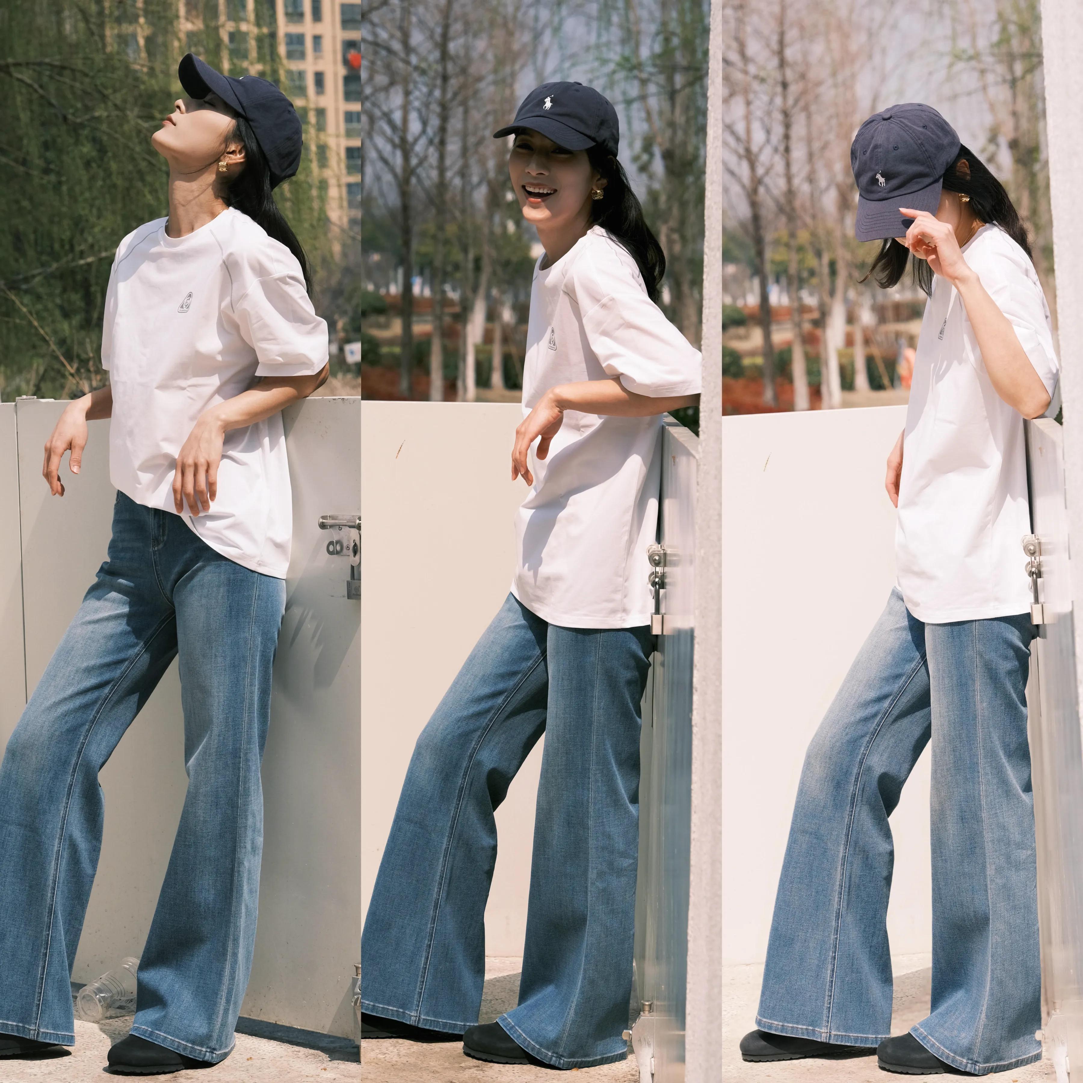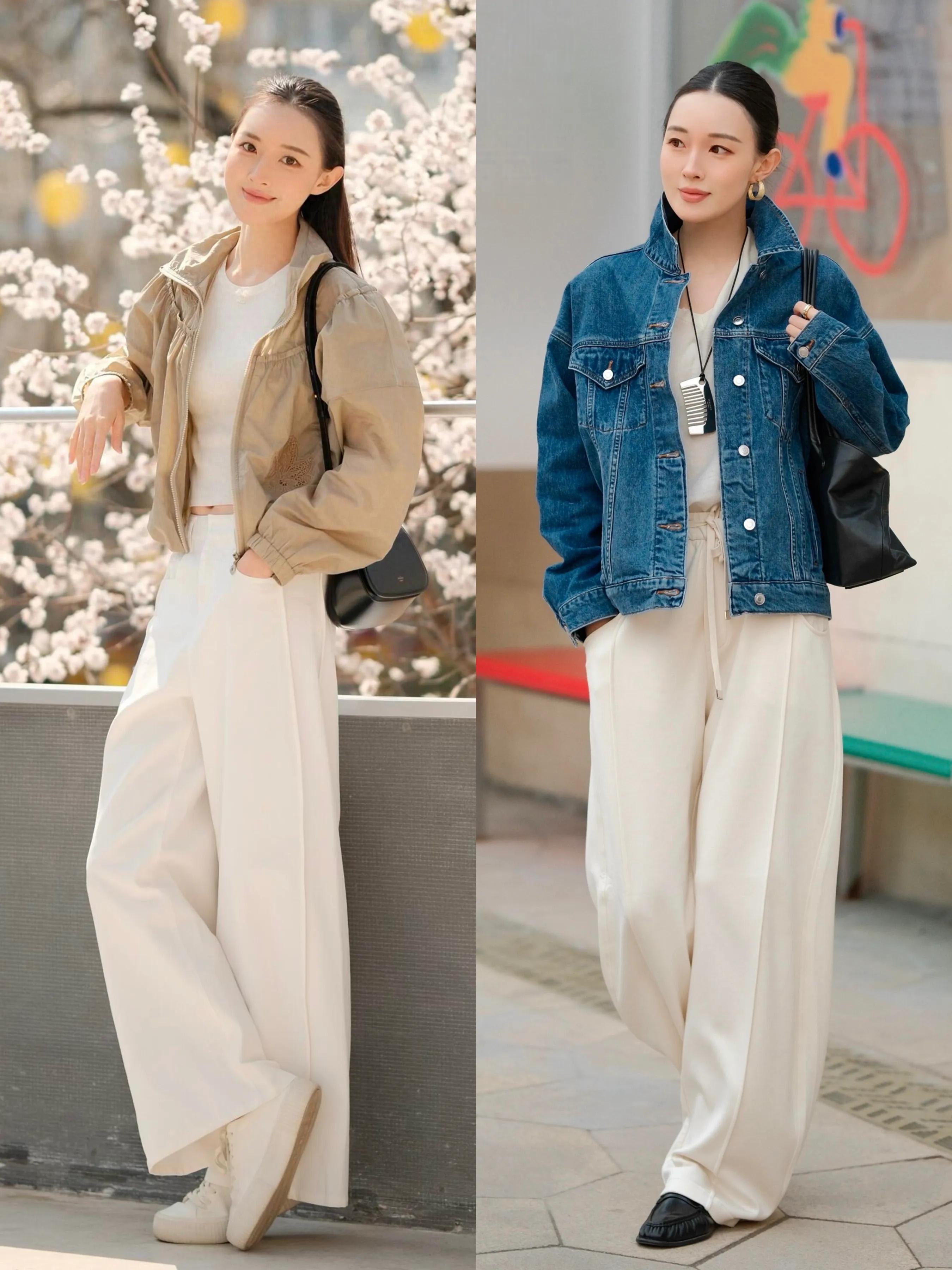 或是换成蓝色牛仔外套,又能玩转休闲慵懒风,一条白色“阔腿裤”,可多穿出不同衣服风格。