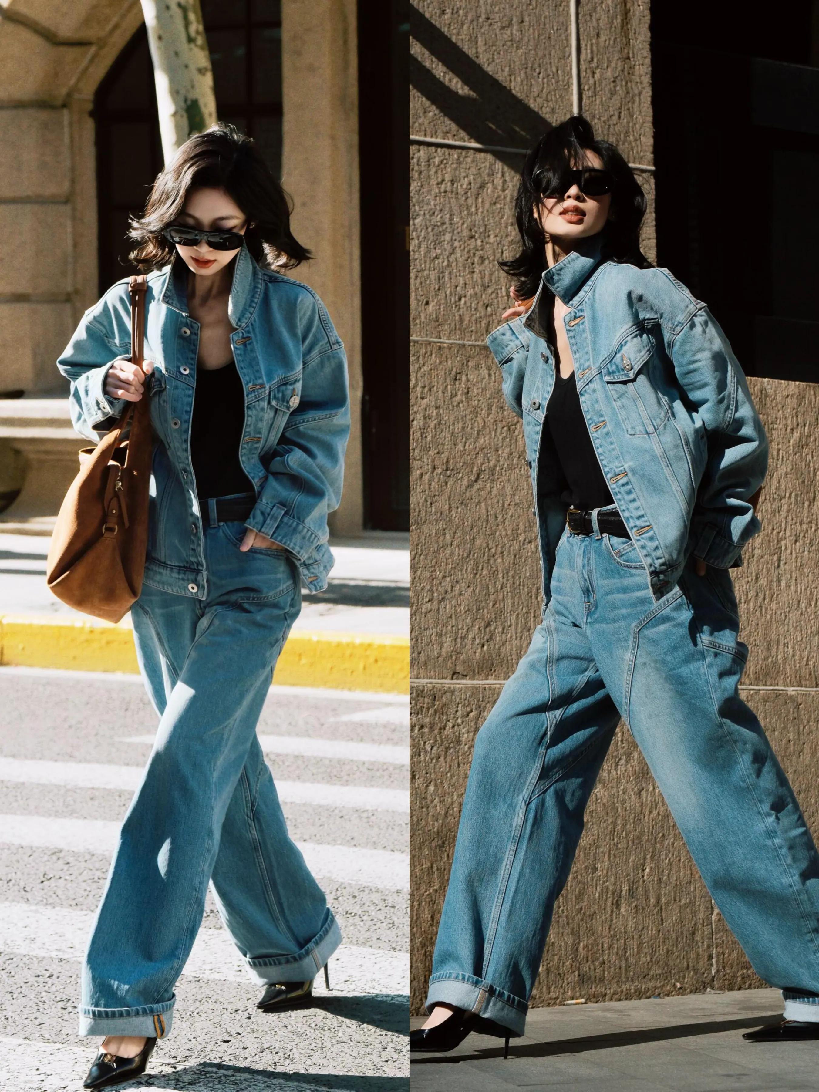 第三章节:阔腿裤如何穿出独属于自己的气质?Tips①:牛仔套装