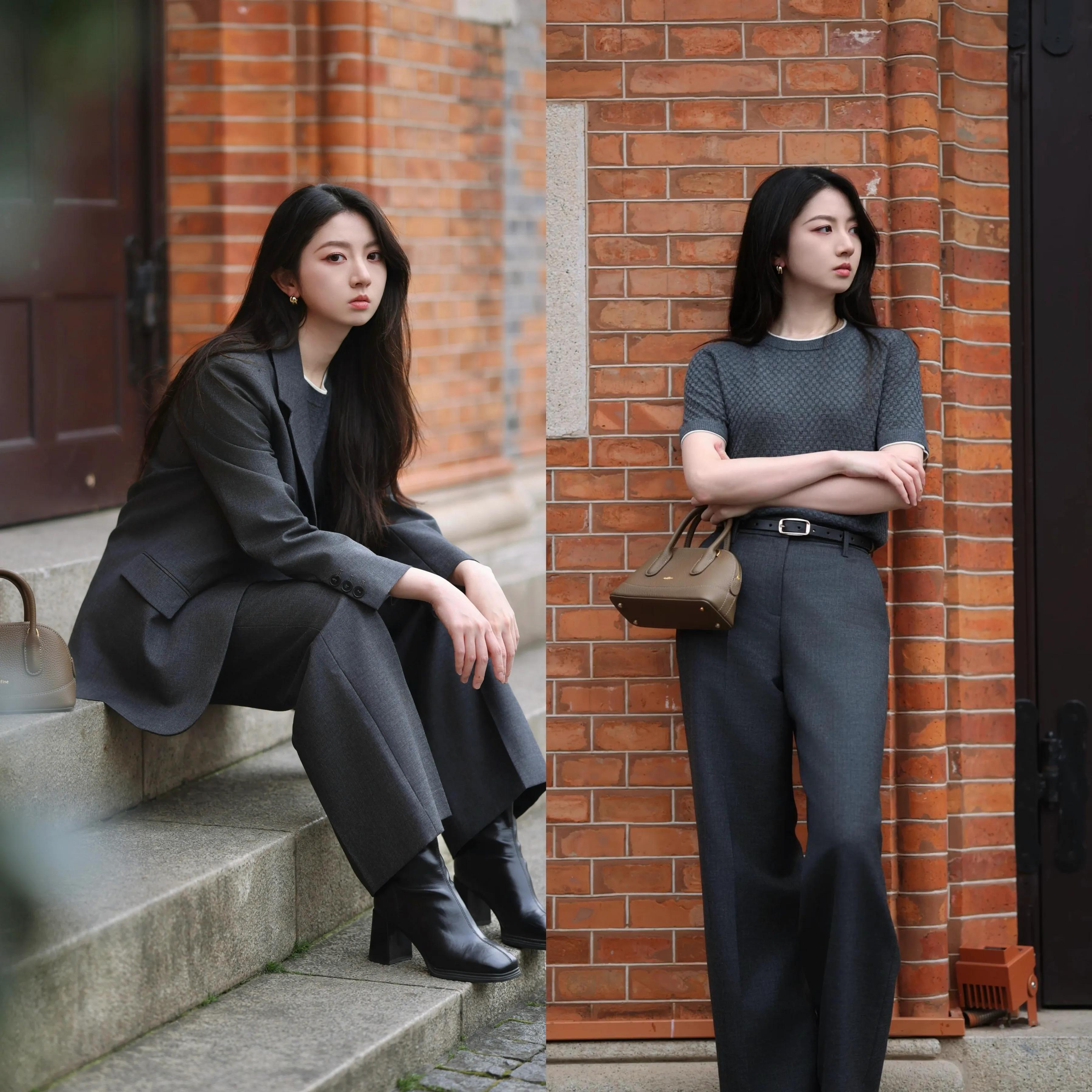 职场上班少不了一套西服,不过千万不要选择黑色西服套装,穿在身上容易沉闷枯燥。不妨换成同样是基础色的灰色西服套装,内搭灰色针织衫,脚踩黑色粗跟单鞋,这样的配色更显气质,干净耐看,自带一种利落气场。