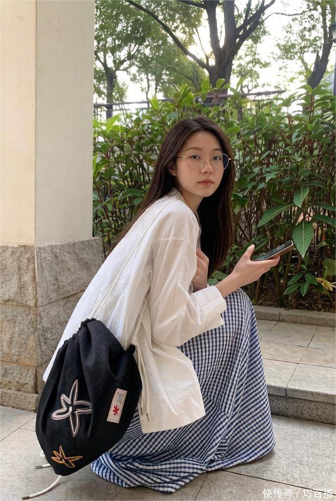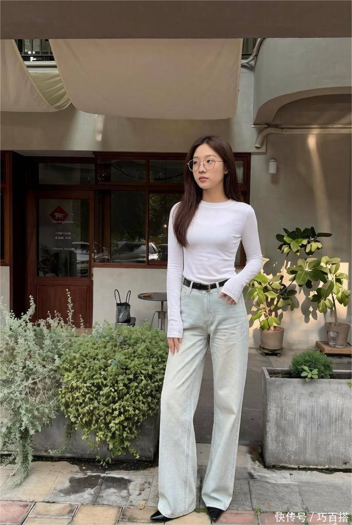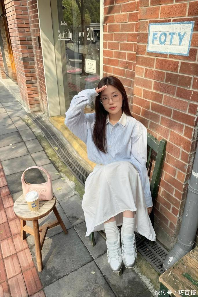 但如果你想找一套既适合春天出门其他季节穿也不会踩雷造型可以尝试白+蓝,两种色系的单品组合,清新文艺,有种把海风和云朵穿在身上的清雅唯美效果,普通素人姐妹学习借鉴毫无压力!